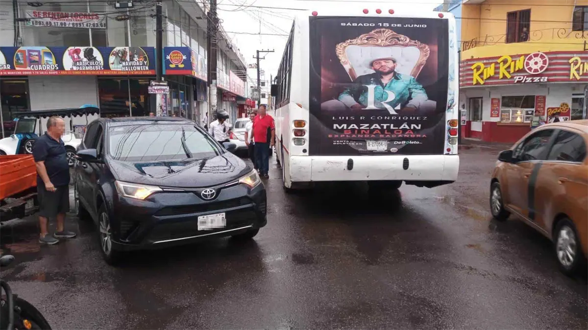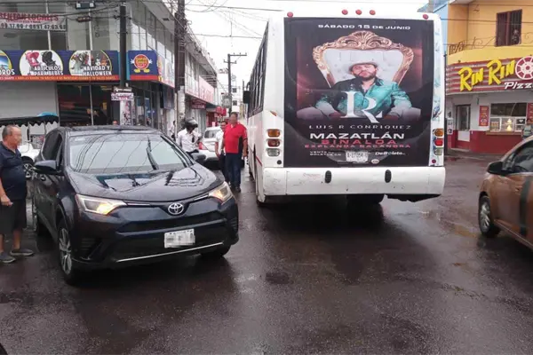 Las prisas por querer cruzar y ganarle el paso a un camión urbano dejaron significativos daños materiales a una camioneta de la marca Toyota en el primer cuadro de Mazatlán.