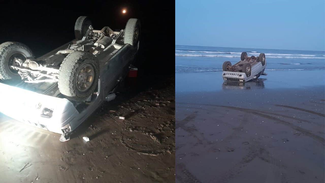 Vuelcan jóvenes en la playa Bellavista en Guasave