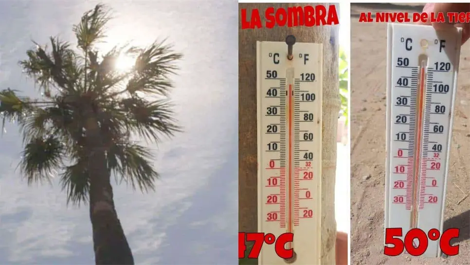 «Infierno de calor, así las temperaturas en Genaro Estrada, Municipio de Sinaloa en estos momentos con 47°C a la sombra y 50 °C al nivel de la tierra. Se siente como si nos quemara el aire, muy sofocante. Se recomienda hidratarse muy bien y no exponerse por mucho tiempo a los rayos del sol».