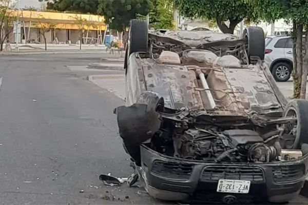 Ángel Ernesto de 20 años de edad y vecino del sector La Conquista resultó lesionado durante una volcadura, que se dio durante esta mañana en el sector del Colegio Sinaloa y la Privada Santa Aynes en Culiacán.
