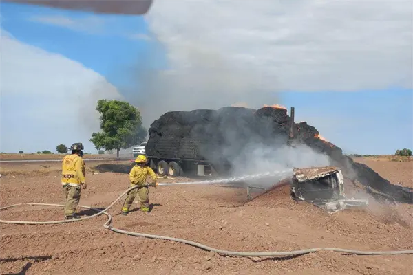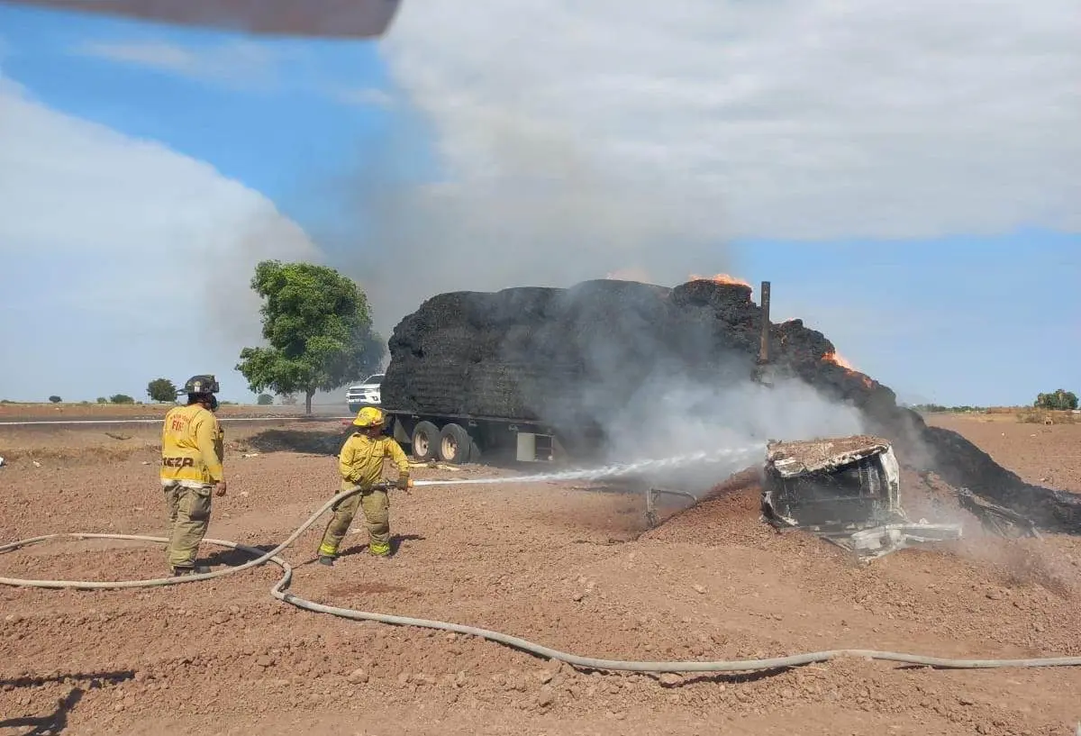 Se incendia tráiler cargado con pacas de maíz en Guasave
