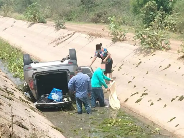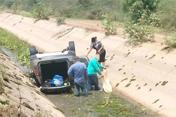 En el interior del vehículo que terminó volcado dentro del canal viajaban tres personas que resultaron con golpes en diferentes partes del cuerpo.