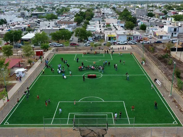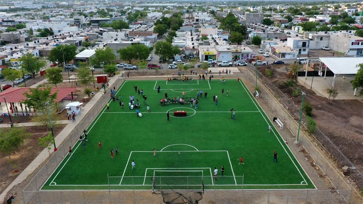 El presidente municipal de Culiacán, Juan de Dios Gámez Mendívil, hizo entrega oficial de una cancha de futbol en el fraccionamiento Alturas del Sur, en un evento que contó con decenas de asistentes entre adultos y niños.