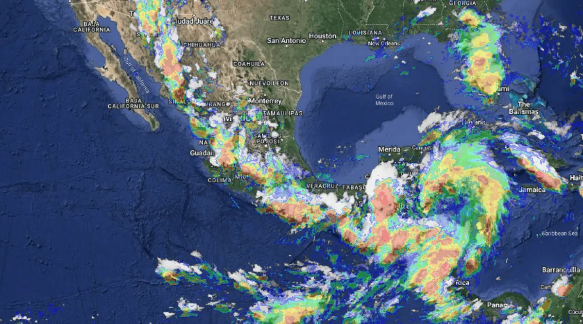 - Lluvias intensas con puntuales torrenciales (150 a 250 mm): Chiapas, Campeche, Yucatán y Quintana Roo.