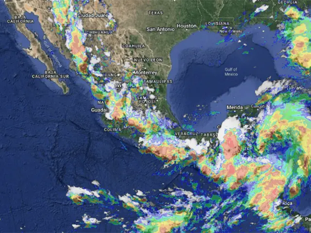 Por otra parte, canales de baja presión sobre el interior del país, en combinación con inestabilidad en altura y la entrada de humedad proveniente de ambos océanos, generarán lluvias en el norte, noroeste, noreste, centro y occidente del territorio nacional, con lluvias puntuales intensas en Nayarit, Jalisco y Colima, y probables torbellinos en Sonora y Chihuahua.