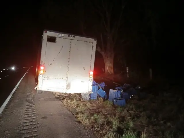 El chofer del camión de cerveza se vio obligado a a estacionarse a la orilla de la carretera, lo que provocó que parte de la carga se derramara.