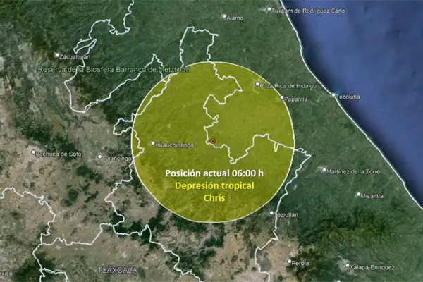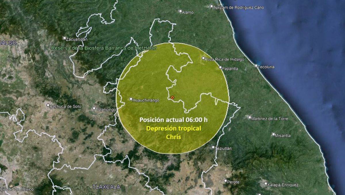 Cris ahora como Depresión tropical, sobre el municipio de Filomeno Mata, Veracruz, origina lluvias puntuales torrenciales a fuertes en entidades del oriente y centro del país.