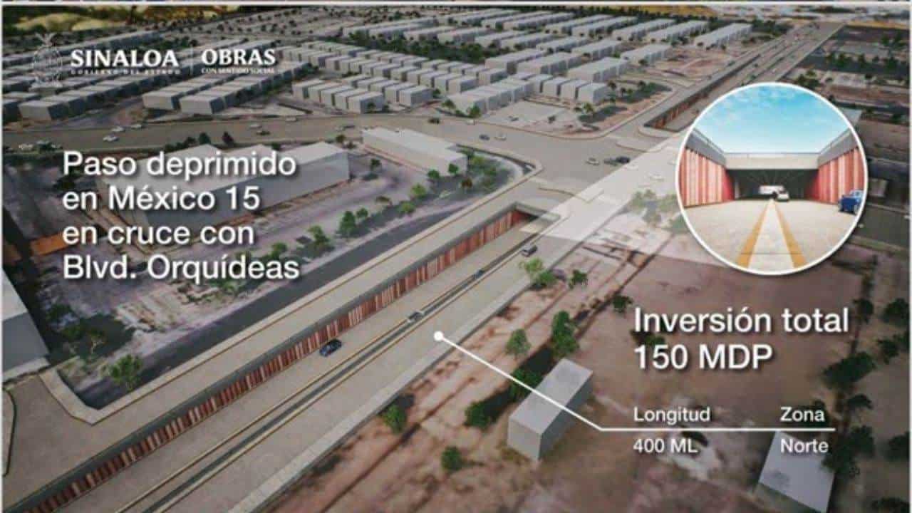 El paso deprimido México 15 comenzará sobre la carretera Internacional México 15 y avanzará 400 metros por debajo del bulevar Orquídeas, para un mejor flujo vehícular en la salida norte.