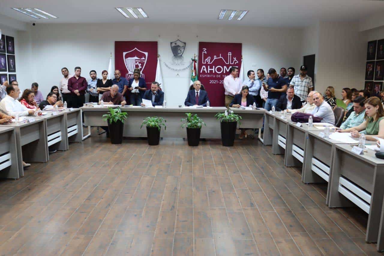 - De igual forma, el cabildo aprobó el dictamen de las comisiones unidas de Hacienda, Urbanismo, Ecología y Obras Públicas, así como la de Salubridad y Asistencia, relativo a dar autorización al municipio para que a través de sus representantes legalmente investidos, permute dos superficies de terreno de su propiedad, una en fraccionamiento ampliación 12 de Octubre y otra en fraccionamiento Paseo Alameda, a cambio de una superficie de terreno propiedad ubicado al sur-poniente de la ciudad, con la finalidad de que el municipio de Ahome a su vez esté en la posibilidad de realizar donación condicionada del dicho bien inmueble a favor del Instituto Mexicano del Seguro Social (IMSS) para destinarse a la construcción de un nuevo Hospital General de 144 camas.