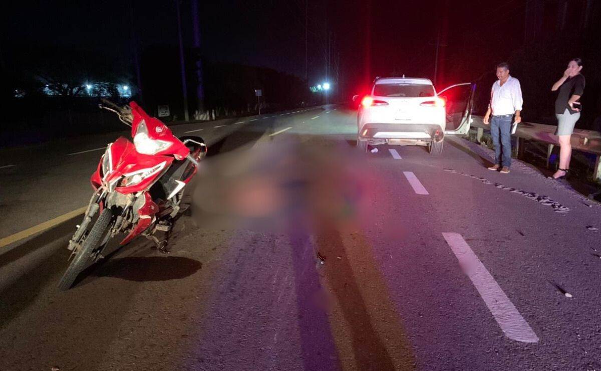 El accidente se registró en la rúa estatal, en la que debido al impacto los tripulantes de la motocicleta salieron disparados contra el asfalto