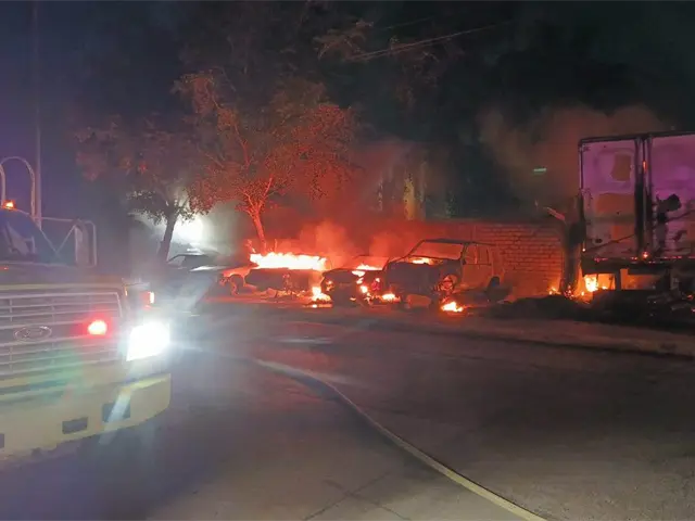 Incendio destruye siete vehículos y una caja de tráiler en un yonque de Culiacán