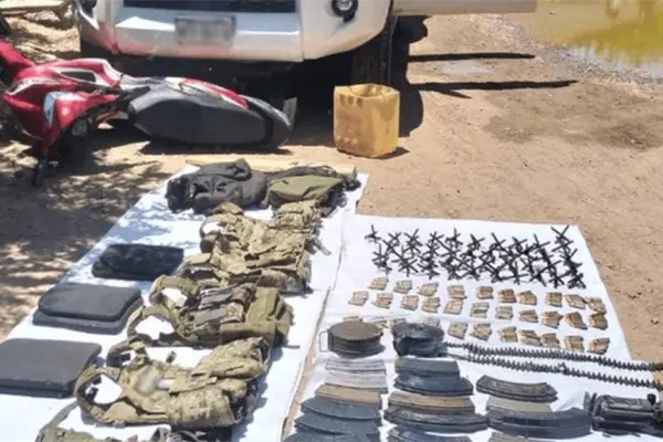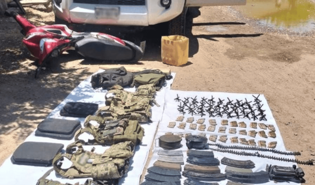 Durante una persecución de los elementos de la Guardia Nacional (GN), lograron asegurar una camioneta con armas largas, cargadores, cartuchos útiles, chalecos tácticos y placas balísticas, así como estrellas ponchallantas en la sindicatura de Villa Juárez, Navolato.