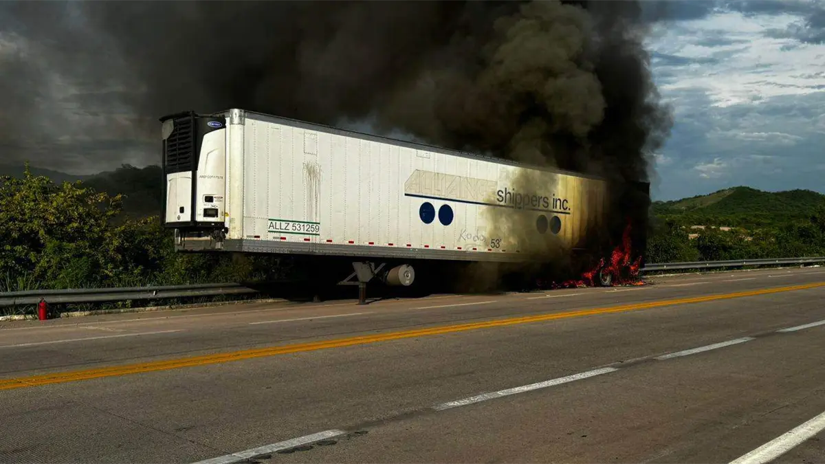 Se incendia caja de tráiler con filetes empacados por la Mazatlán-Tepic en Escuinapa