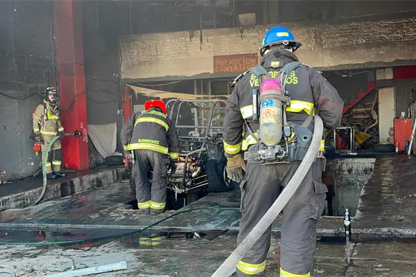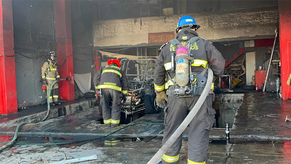 Inmediatamente y luego de la explosión, las llamas se extendieron por el vehículo en reparación, provocando una densa nube negra de humo, la que rápidamente se extendió por todo el local.
