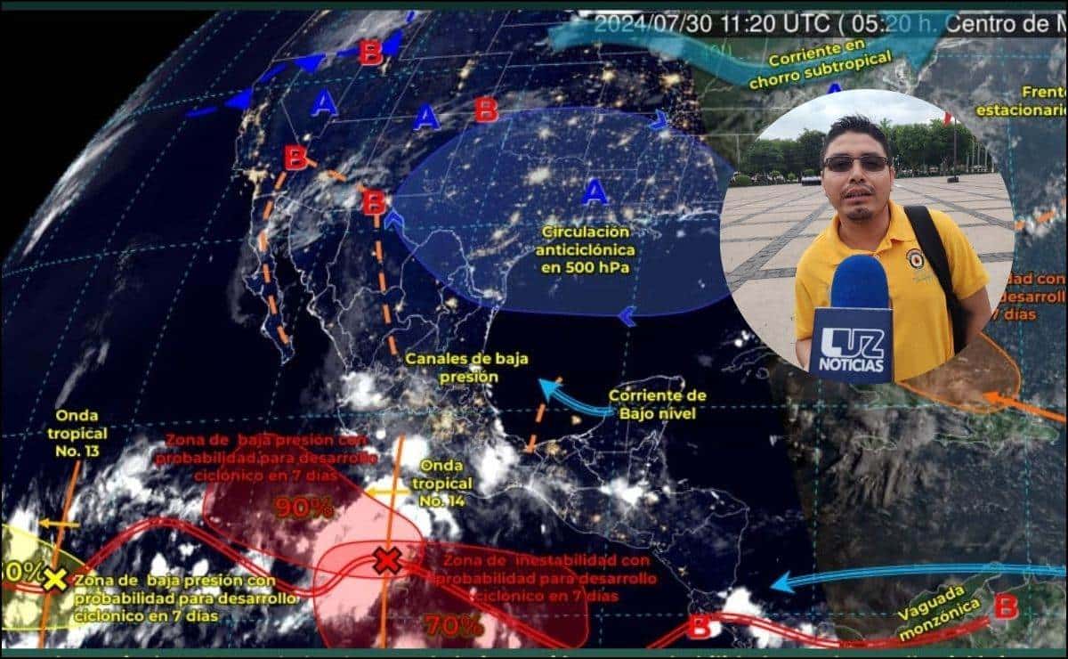 Juan Pablo Cerón Hernández dijo que las precipitaciones se esperan con fuerza en lo que resta de este miércoles 31 de julio, debido a la Onda Tropical número 14.