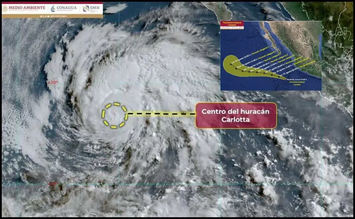 El Huracán Carlotta subirá a categoría 2 y, aunque no tocará tierra, sus efectos se sentirán en México durante las próximas horas.