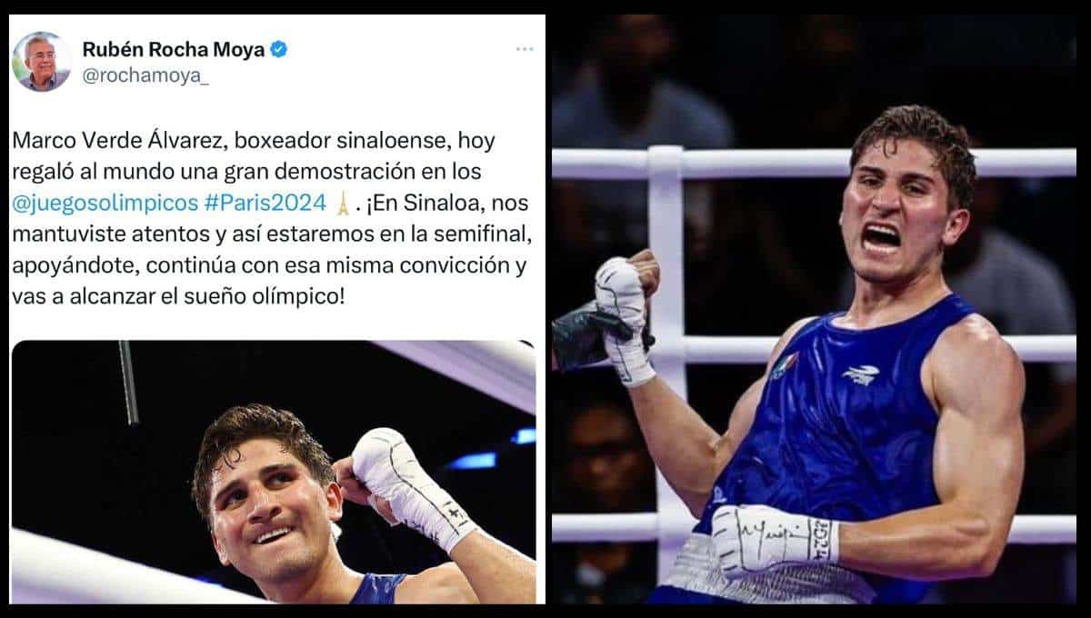 «Marco Verde Álvarez, boxeador sinaloense, hoy regaló al mundo una gran demostración en los @juegosolimpicos #Paris2024 En Sinaloa, nos mantuviste atentos y así estaremos en la semifinal, apoyándote, continúa con esa misma convicción y vas a alcanzar el sueño olímpico!» compartió.