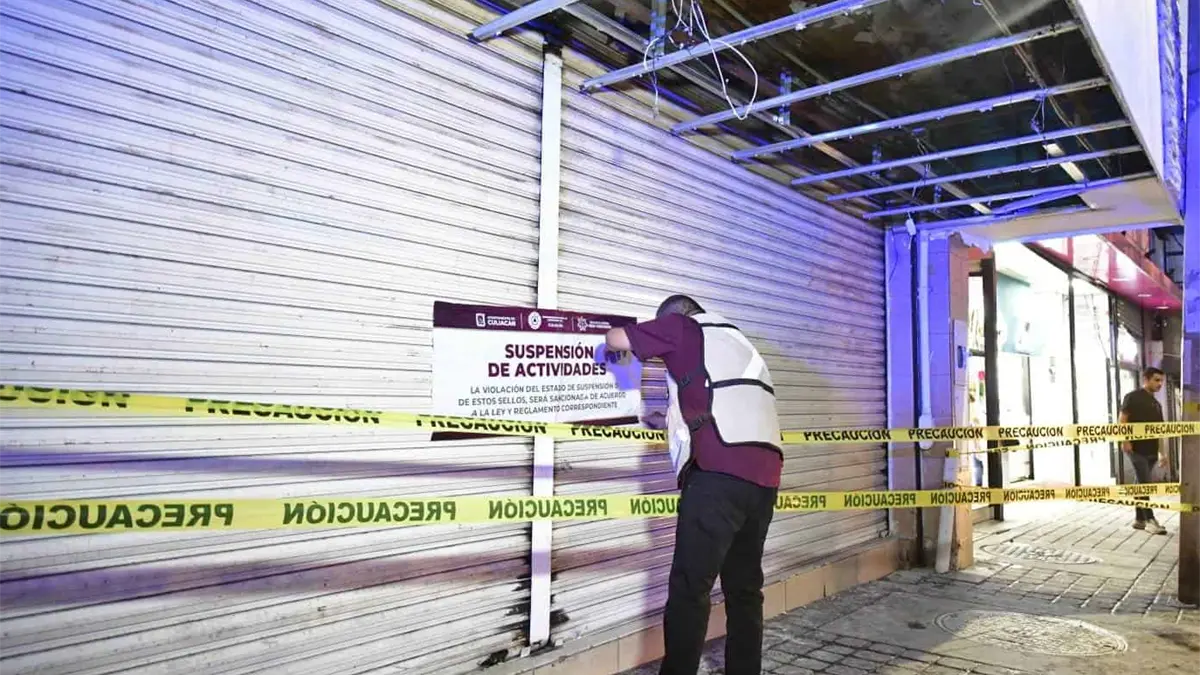 Debido al derrumbe que se registró de un techo de plafón, las autoridades de Protección Civil clausuraron el establecimiento.