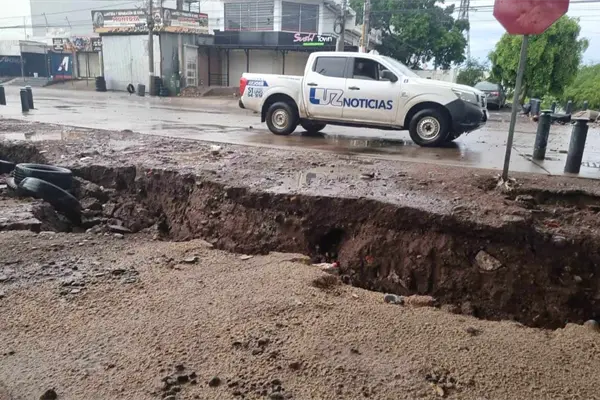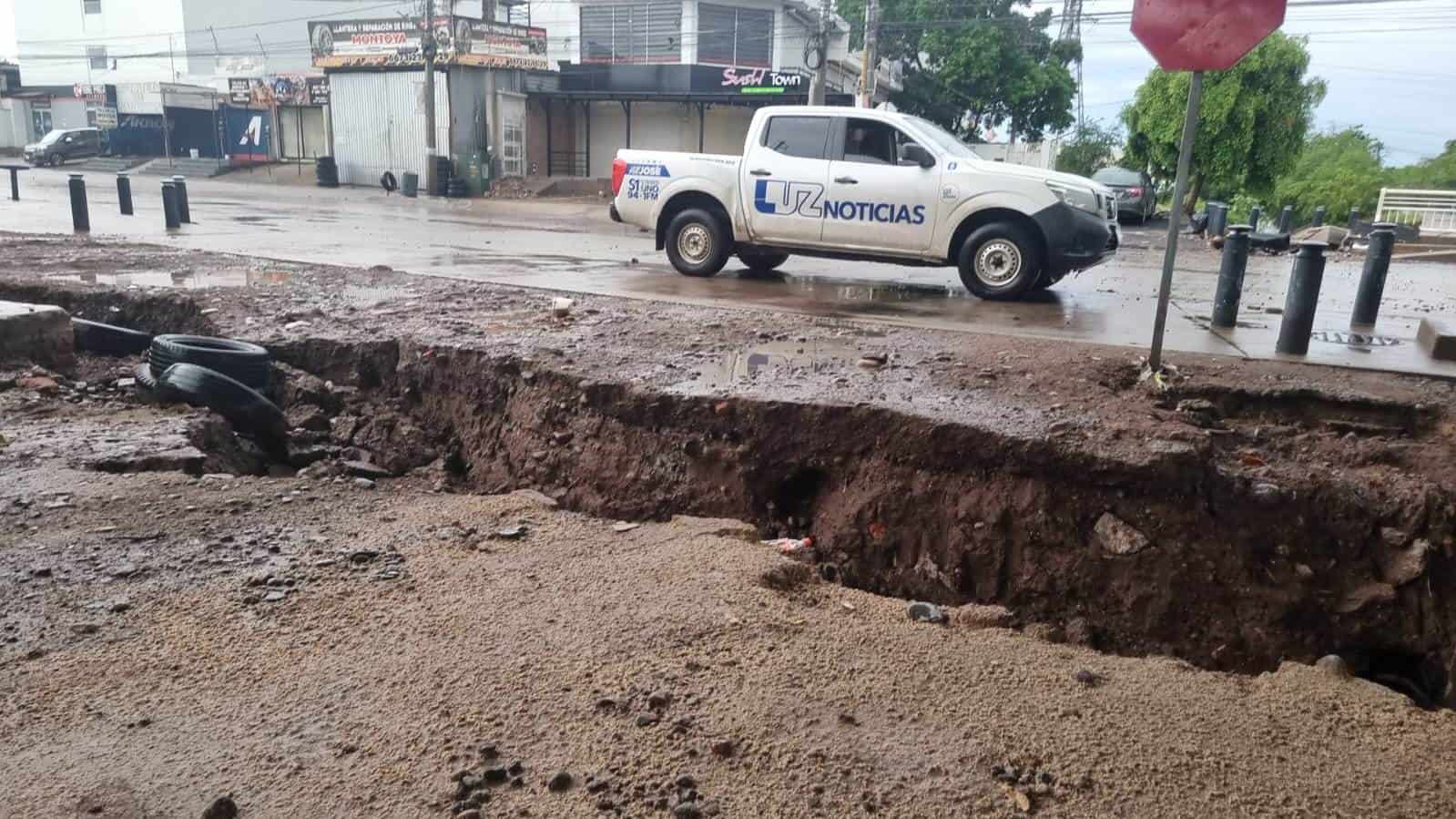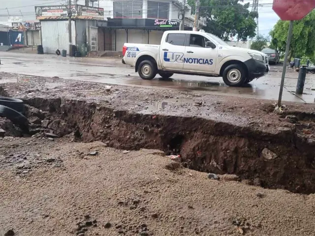 Lluvias en Culiacán provocan un enorme socavón en la colonia Ignacio Allende