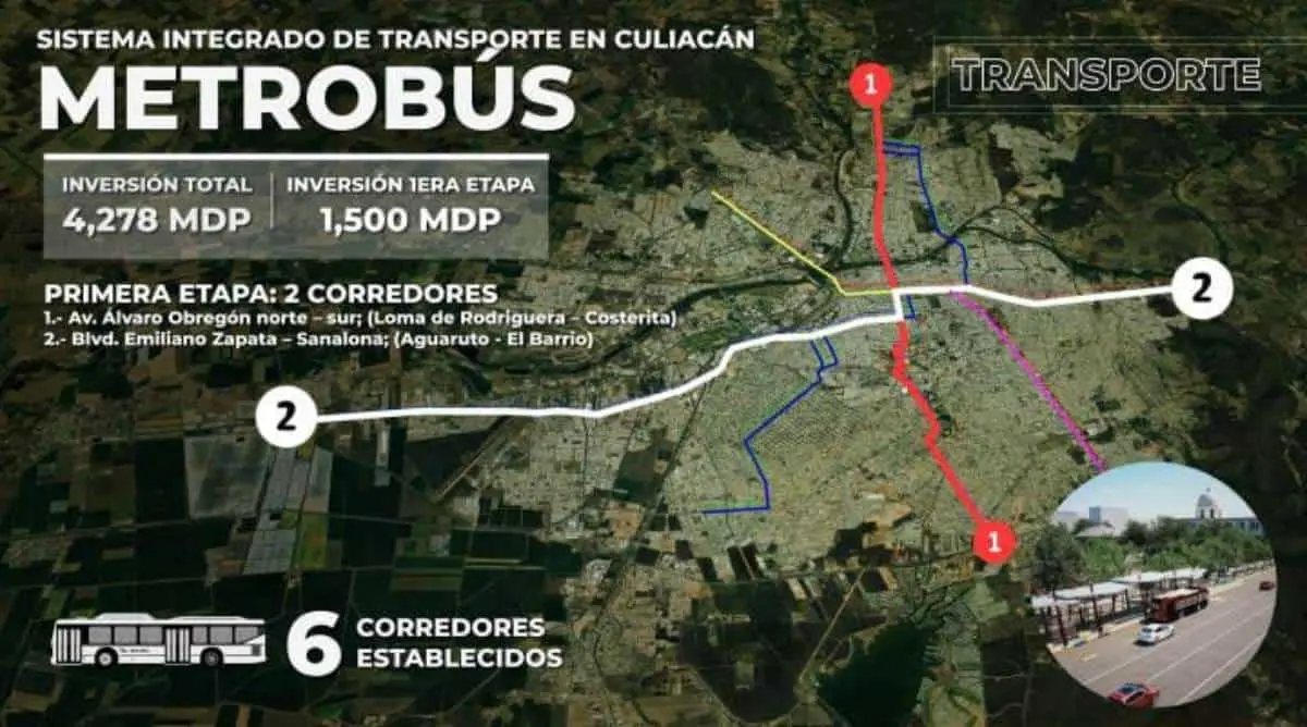 Uno de los proyectos que se contempla concretar en el próximo sexenio del Gobierno Federal es el del Metrobús en Culiacán, el cual vendría a mejorar significativamente la movilidad en la ciudad capital.