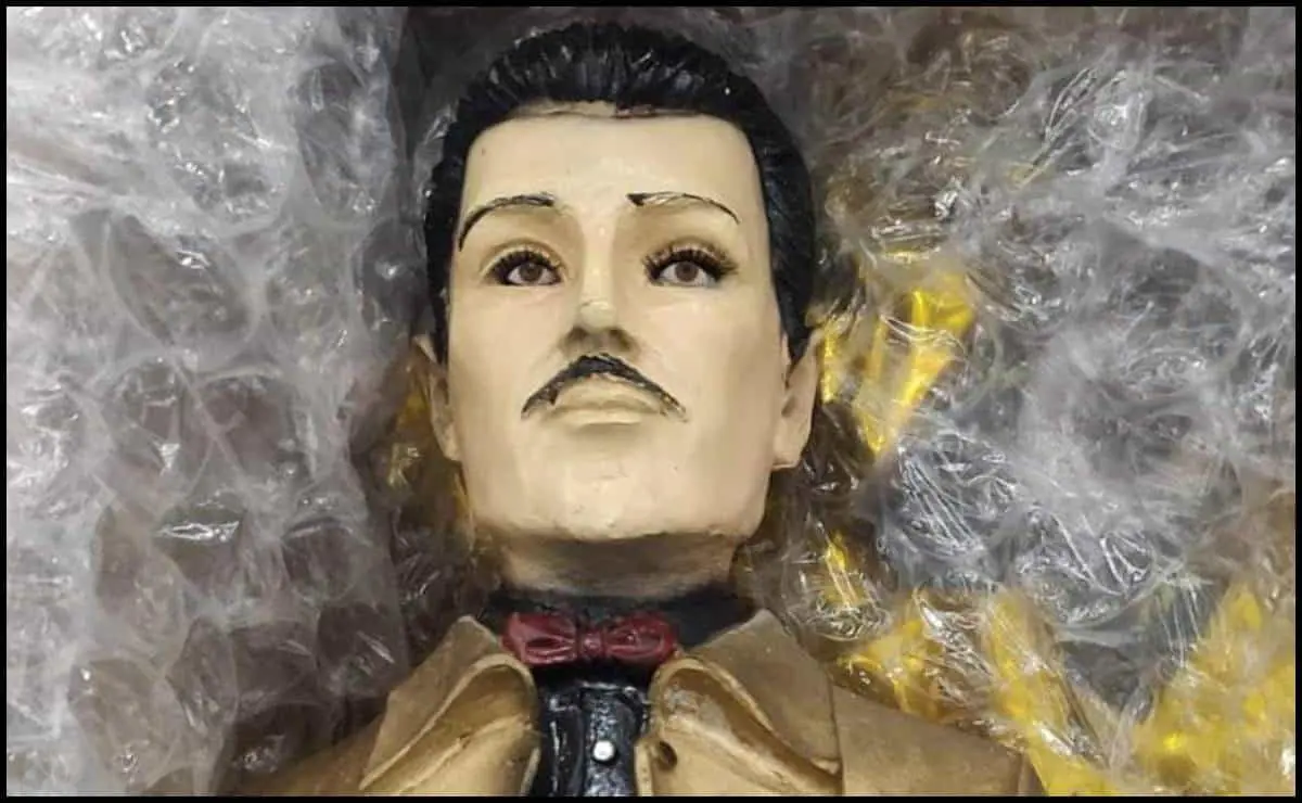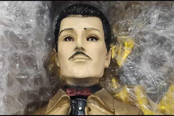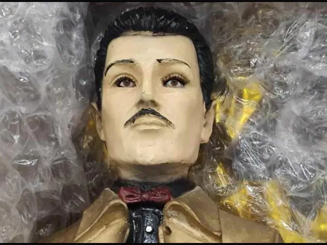 La Guardia Nacional aseguró una figura de Malverde que en su interior contenían bolsas de plástico con sustancias con las características propias de metanfetamina, en una empresa de paquetería y mensajería de Culiacán, Sinaloa.
