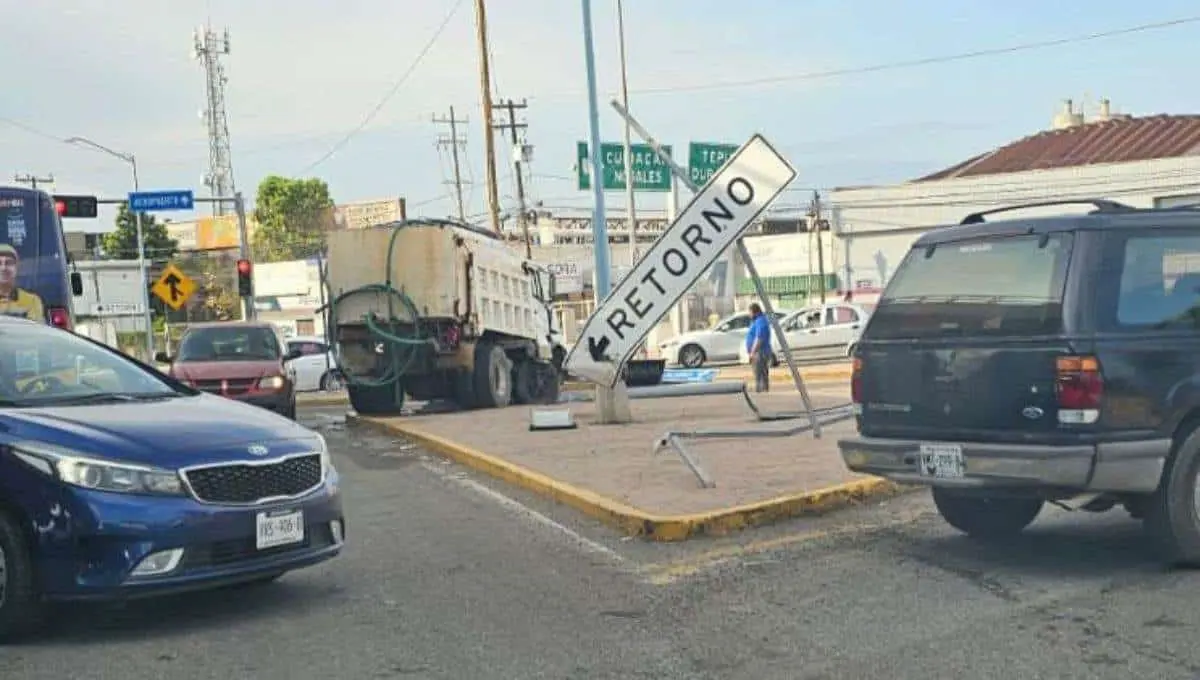 Un poste de señalética derribado y un automóvil compacto chocado, fue el resultado de una colisión provocada por el conductor de una pipa durante la mañana de este lunes en el sector Niños Héroes, al sur de Mazatlán.