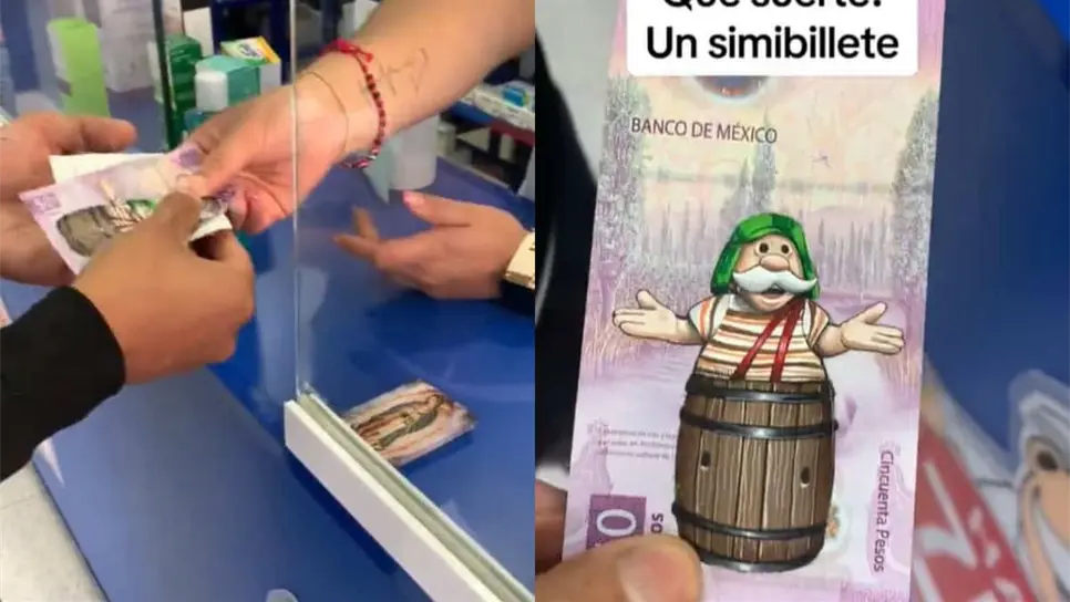 En el video logra apreciarse cómo un "cliente" recibe su cambio después de comprar sus medicamentos en Farmacia Similares de manera cotidiana, pero lo curioso es que uno de los billetes que recibe tiene un dibujo del icónico Doctor Simi con un atuendo del "Chavo del 8" dentro de un barril.