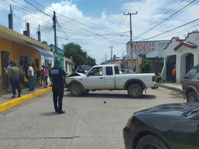 El reporte a C4 señalaba un hecho de tránsito de tipo choque en el cruce que forman las calles Francisco I. Madero, Centenario y Francisco Pérez de la colonia centro, en el que participó una camioneta de la marca Ford en color blanco del año 1999.
