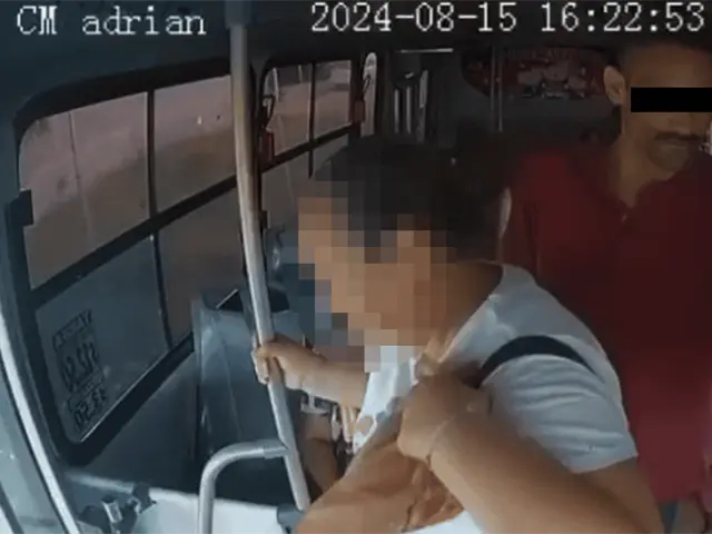 Las cámaras de videovigilancia del camión urbano captaron el momento en que un sujeto que viajaba como pasajero se pone de pie y se dirige hacia el chofer del transporte.