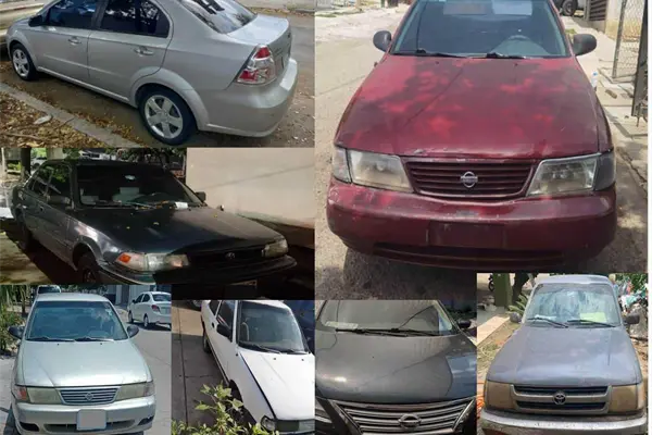- 5.- Automóvil Nissan Sentra tinto, modelo 1995, localizado en la colonia Nakayama. Este vehículo y el anterior fueron asegurados el mismo día del robo, el 2 de agosto de 2024.