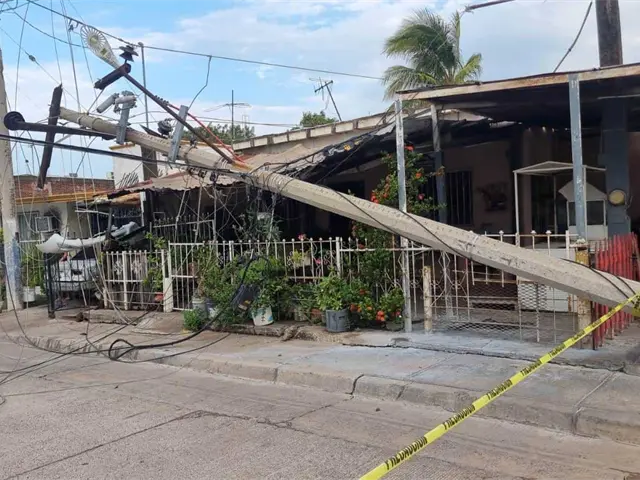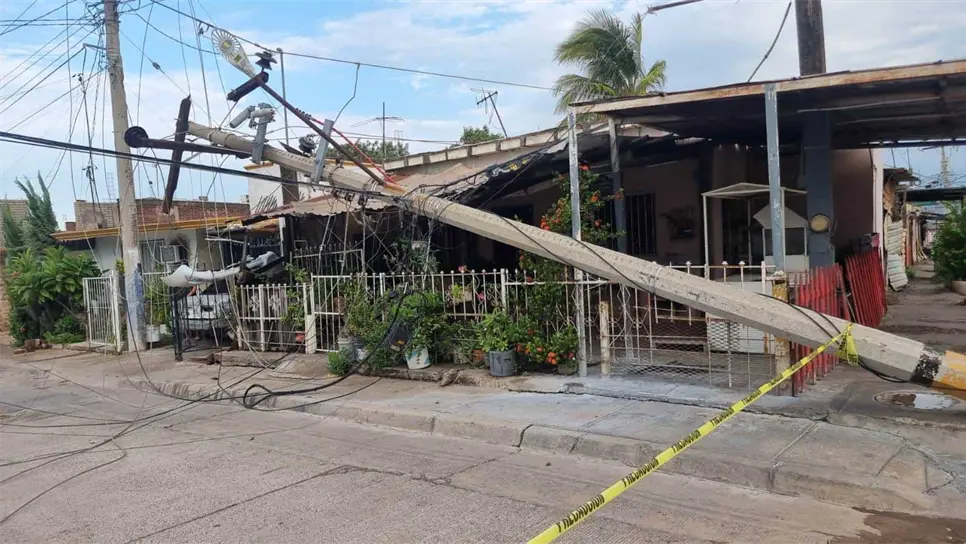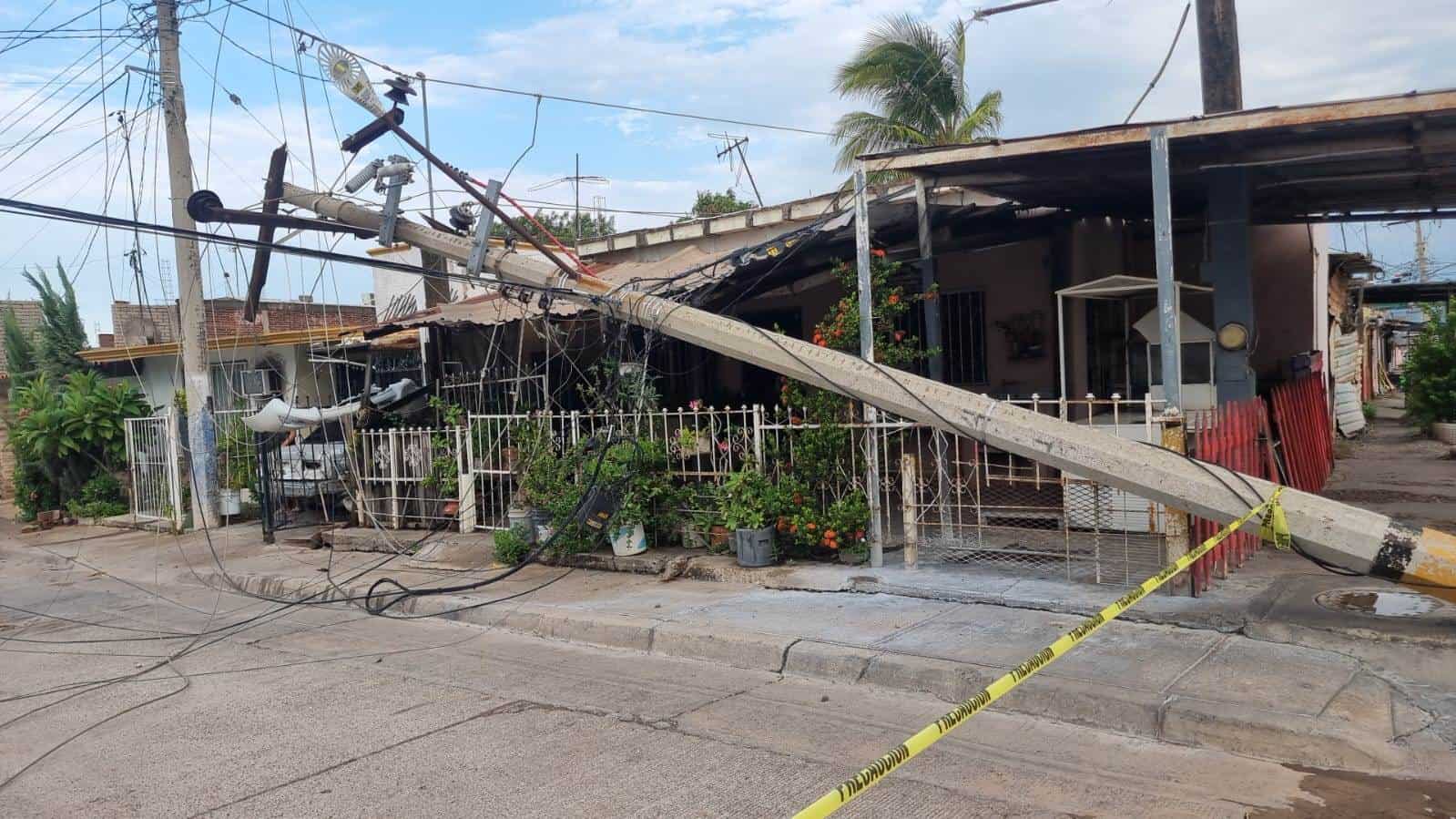 Un poste de la Comisión Federal de Electricidad se desplomó en una de las calles de la colonia Esthela Ortiz de Culiacán.