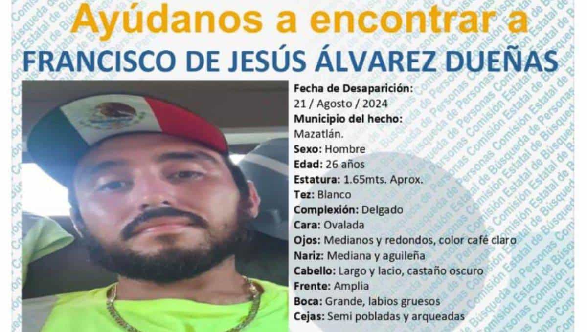 Familiares buscan a Francisco de Jesús, desprecio en Mazatlán el 21 de agosto