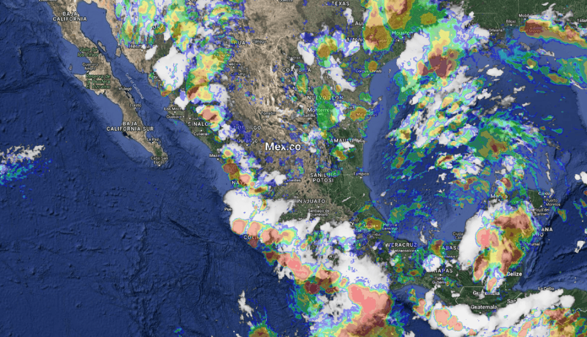 - Intervalos de chubascos (5 a 25 mm): Baja California Sur, Zacatecas, Nayarit, San Luis Potosí, Tabasco, Campeche, Yucatán y Quintana Roo.