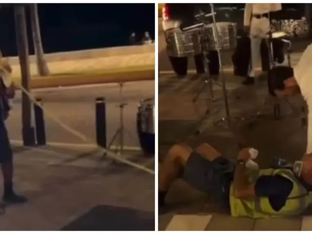 En el video, que se hizo viral en redes sociales, se observa cómo el músico ataca con una soga a un ciudadano, lo jala de la mano y lo tumba al suelo, mientras el agresor y sus compañeros se ríen a carcajadas.