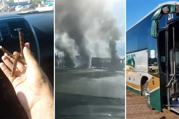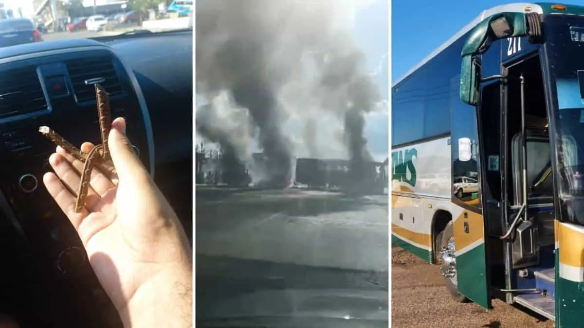 Además, en la Carretera Internacional México 15, a la altura de la comunidad de La Presita, se observaron algunos vehículos pesados ardiendo en fuego y atravesados para tapar la circulación.