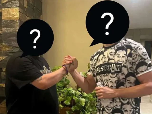Se les nota a ambos con una vestimenta cómoda, asemejándose a pijamas; también logra se ve en la parte inferior de la imagen una hielera, por lo que podría suponerse que ambos se tomaron unos buenos botes de cerveza para ponerse al día mutuamente.