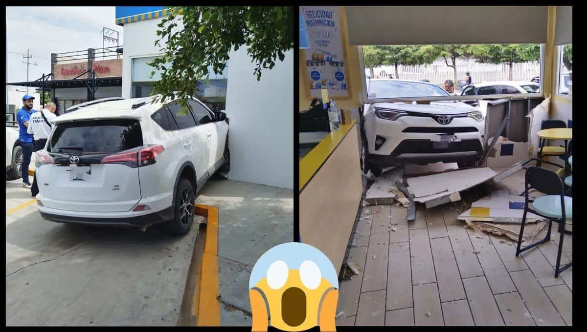 Gran susto se llevó una mujer vecina de la ciudad de Guasave, presuntamente al equivocarse de pedal de su vagoneta y acelerar mientras trataba de estacionarse, lo que provocó que terminara adentro de un negocio de venta de helados con todo y su vehículo.