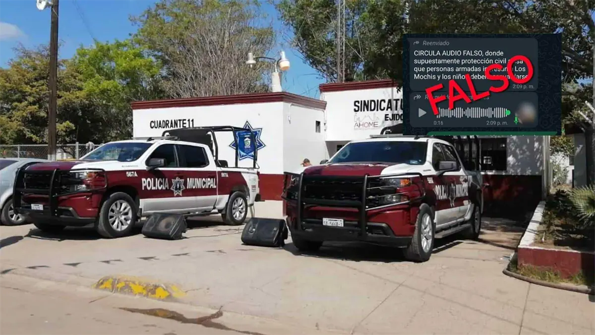 Por medio de las redes sociales se comparte un audio de voz, donde supuestamente Protección Civil avisa que personas armadas ingresaron a Los Mochis y los niños deben resguardarse, información que se verificó y resultó completamente falsa.