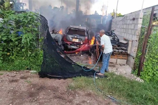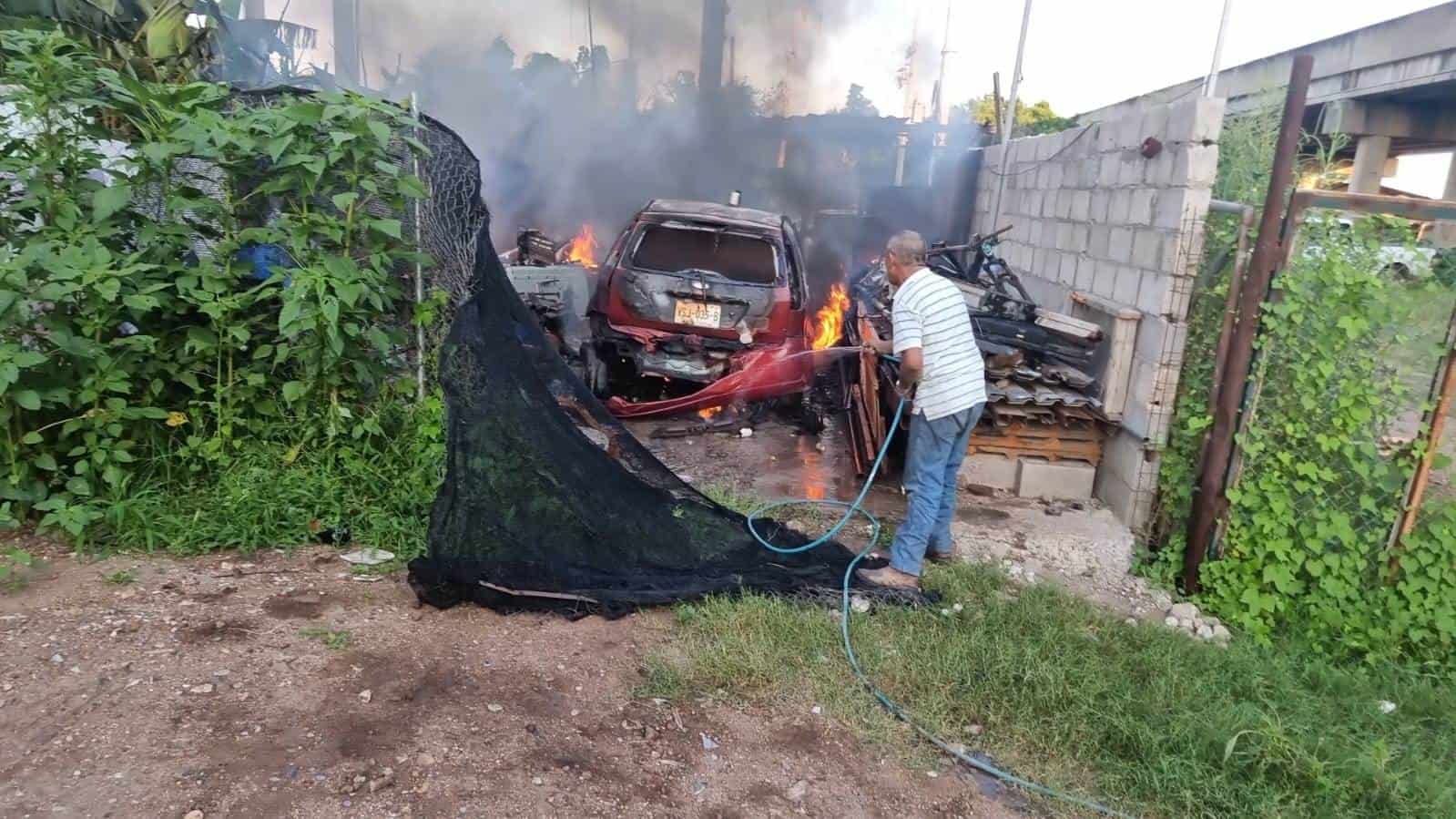 Las personas del lugar utilizaron mangueras para controlar el siniestro, hasta que llegaron los bomberos para sofocar el incendio.