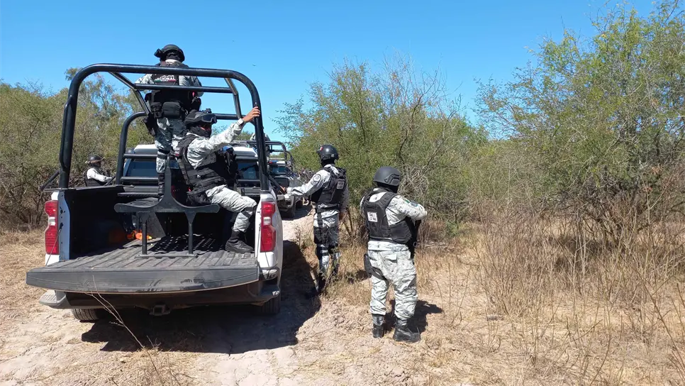 En enfrentamiento, Guardia Nacional asegura 4 camionetas y arsenal de armas en Piaxtla de Abajo