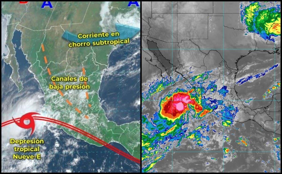 Jueves 12 de septiembre a las 18:00 h: La Depresión Tropical 9 se encuentra frente a las costas de Nayarit, en el océano Pacífico.