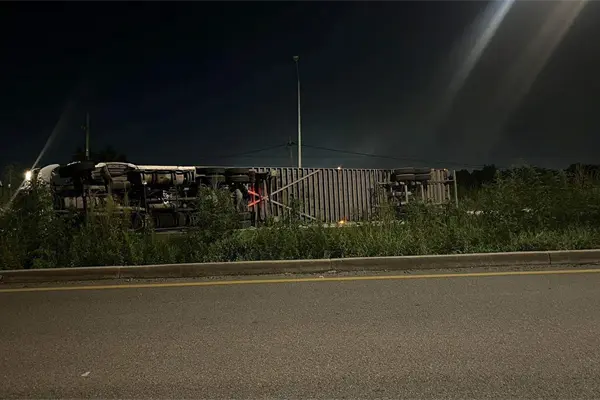 Vehículo choca y se incendia luego de que un tráiler volcara sobre La Costerita, en Culiacán