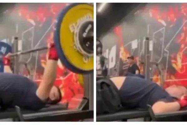 Mientras realizaba un press de pecho, el peso lo venció y la pesada barra le aplastó el cuello por casi un minuto.