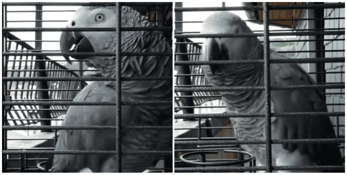Compartido por el usuario (@UlisesDavid__), el video de poco menos de 1 minuto muestra el momento en el que el pequeño loro se encuentra jugando. Poco después se escucha el estruendo y el ave de inmediato se descuelga de su jaula.