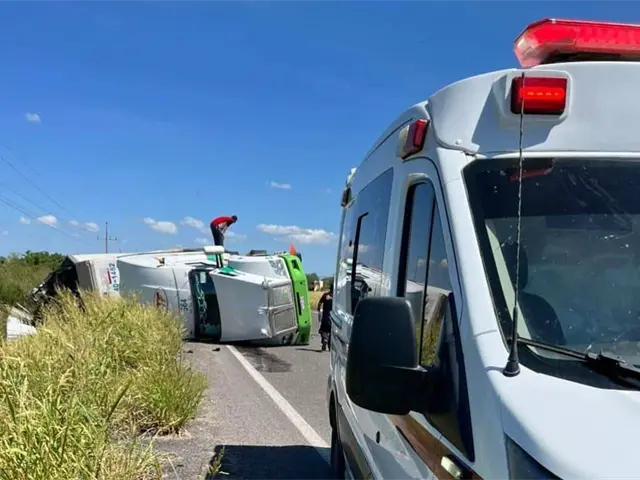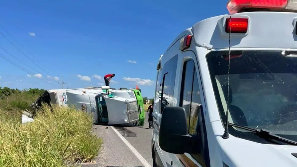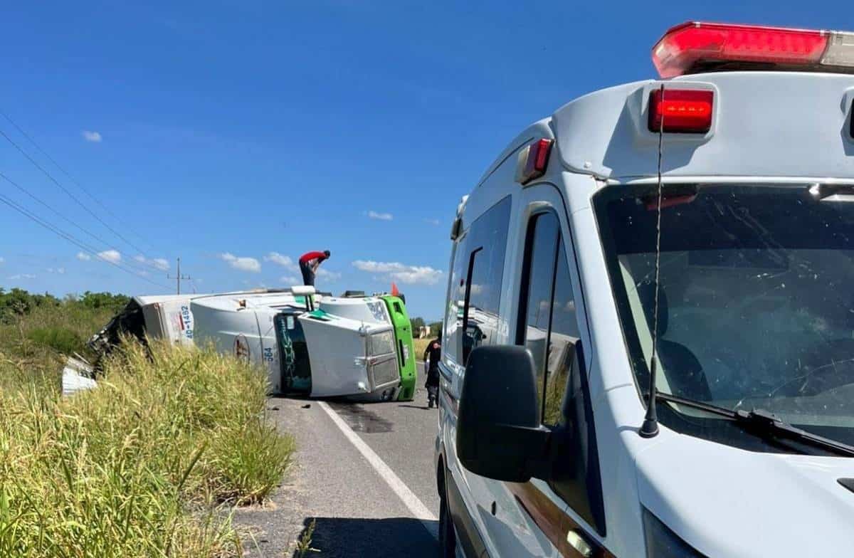El accidente ocurrió en las inmediaciones del ejido Dolores Hidalgo, cuando el conductor del tractocamión, por causas aún no determinadas, perdió el control del vehículo y terminó volcado a un costado de la carretera.