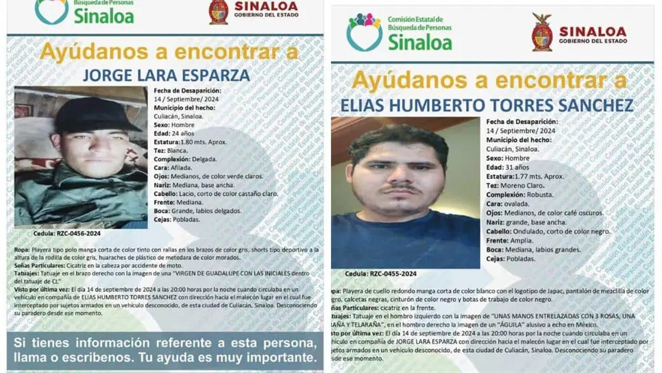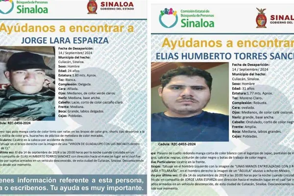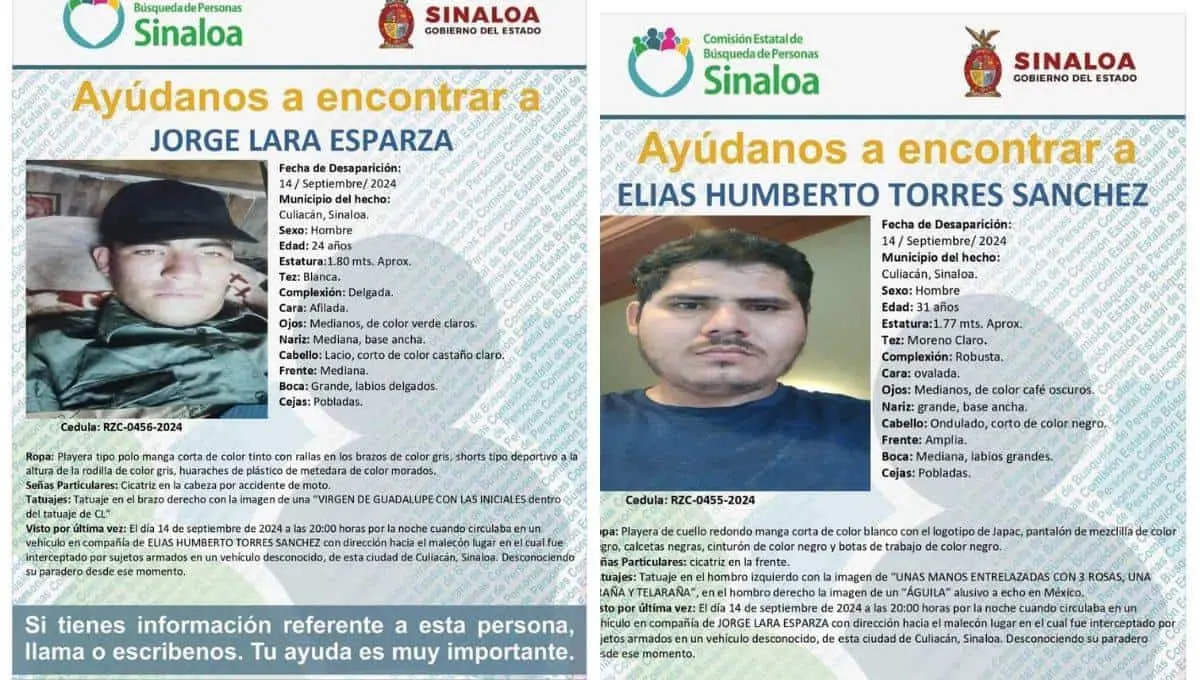 Se trata de Jorge L, de 24 años de edad y Elías Humberto T, de 32 años, quiénes fueron privadas de la libertad la noche del pasado 14 de septiembre por sujetos armados cuando circulaban en un automóvil con rumbo hacia el malecón.