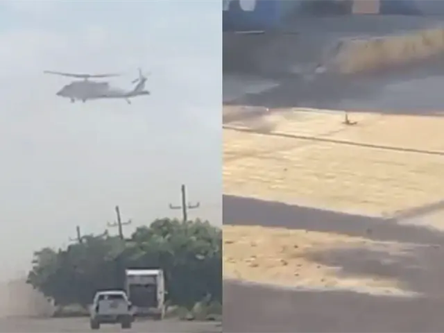 Algunas personas que alcanzaron a grabar el operativo confirmaron que en la comunidad Lo de Reyes estaba un helicóptero Black Hawk sobrevolando, ya que al parecer este seguía las unidades sospechosas.