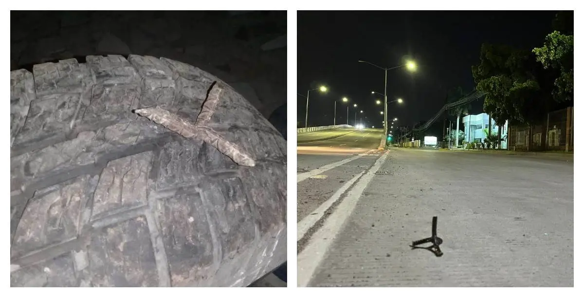 Al detectar un ponchallantas en la vía pública, lo mejor es sacar la vuelta e informar al 911 para que las autoridades retiren los artefactos del lugar y así evitar algún accidente.