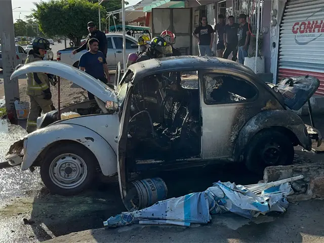 Falla eléctrica genera incendio en vocho en taller de Mazatlán