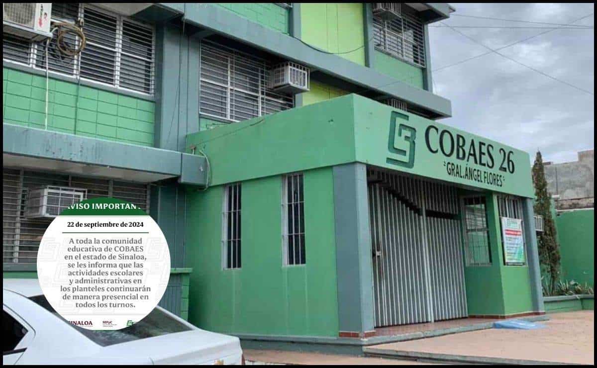 El Colegio de Bachilleres del Estado de Sinaloa (COBAES) anunció que este lunes 23 de septiembre se mantienen las clases presenciales.